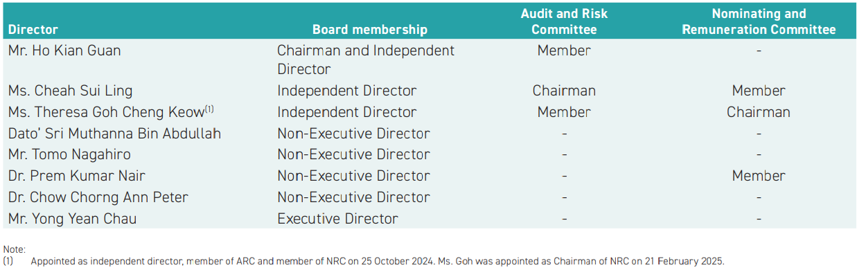 For FY2024, the NRC of the Manager consisted of Dr. Jennifer Lee Gek Choo (Chairman of the NRC), Ms. Cheah Sui Ling and Ms. Theresa Goh Cheng Keow, all of whom are non-executive and independent directors, as well as Dr. Prem Kumar Nair, a non-executive director. The NRC meets at least once a year to deliberate on remuneration matters, as well as matters related to the appointment and succession of Board members, Board performance evaluation and directors' independence.