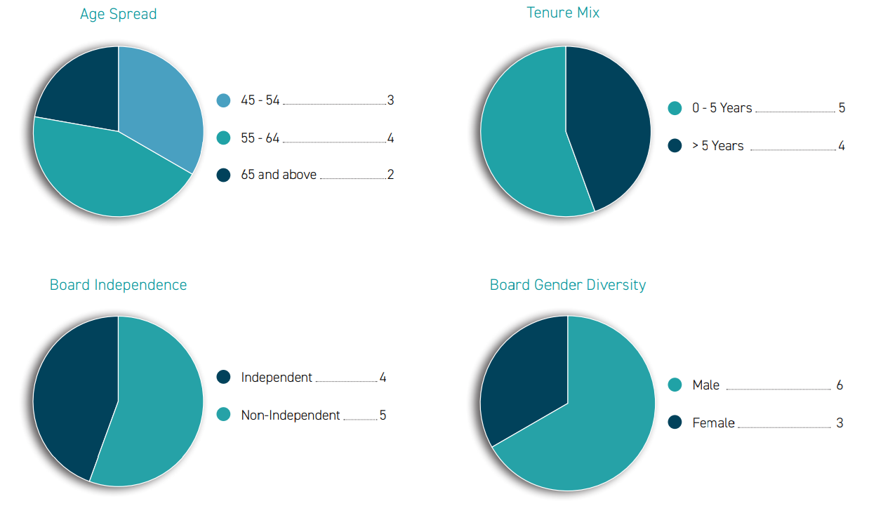 The composition of the Board is regularly reviewed to ensure it has the appropriate mix of expertise, experience and size. In conducting this review, the Board strives to achieve a balanced representation of skill, experience, age, cultural background and gender.