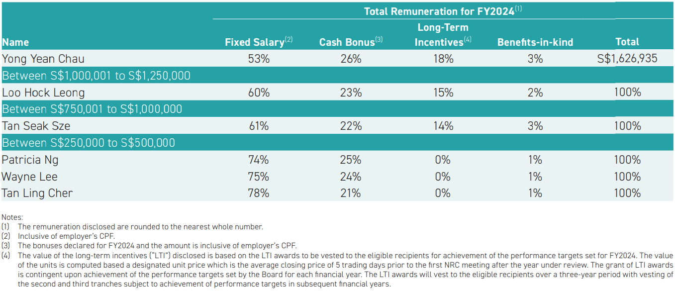 The remuneration of the CEO and top 5 key executives of the Manager for FY2024 is as follows: